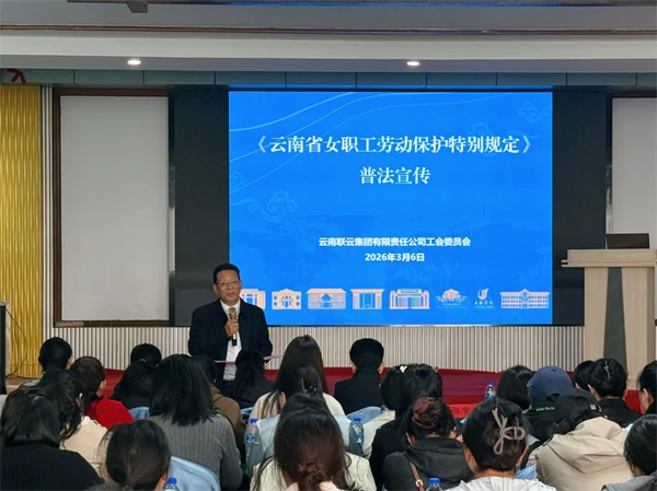 为深入学习习近平新时代中国特色社会主义思想,贯彻习近平总书记关于工人阶级和工会工作的重要论述、习近平总书记关于妇女儿童和妇联工作的重要论述,扎实推进“五一巾帼”系列行动,丰富女职工精神文化生活,近日,云南联云集团工会举办《云南省女职工劳动保护特别规定》普法宣传活动。集团有关领导,所属各单位工会主席、副主席及工会女职工委员会主任,一线女职工代表参加活动。