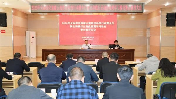 4月17日,省科技厅召开2026年全面深化清廉云南建设科技行动暨全厅树立和践行正确政绩观学习教育警示教育大会,深入学习贯彻习近平总书记关于党的建设的重要思想、关于党的自我革命的重要思想,全面贯彻二十届中央纪委五次全会,以及省纪委十一届六次全会等会议精神,全面总结清廉云南建设科技行动成效、分析形势、部署任务,进一步统一思想、压实责任、凝聚合力。