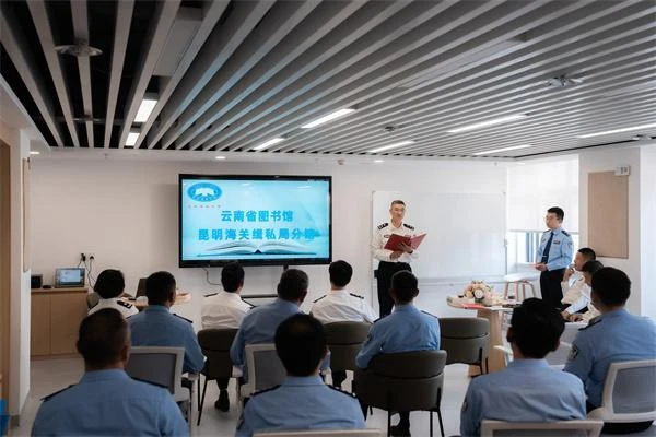 云南省图书馆昆明海关缉私局分馆的建成,是昆明海关缉私局加强警营文化阵地建设的重要成果。局党组书记、局长郑军为图书馆启用仪式致辞,倡导全体民警辅警始终以“学无止境”的姿态保持学习,在阅读中成长、在实干中建功,为服务公安工作高质量发展贡献力量。同时对图书馆的规范使用提出三点要求:一是压实管理责任,加强制度建设,动态更新书籍,把图书馆打造成大家愿意来、喜欢来、经常来的精神阵地;二是爱护公共书籍,文明阅读、妥善保管,共同守护好来之不易的阅读家园;三是勤学赋能履职,利用业余时间开展读书学习,把理论知识转化为执法能力、实战本领、工作实效,奋力推动缉私工作高质量发展。