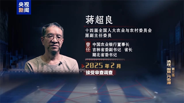 蒋超良,十四届全国人大农业与农村委员会原副主任委员,曾任中国农业银行董事长,吉林省委副书记、省长,湖北省委书记等职务,2025年2月接受审查调查。