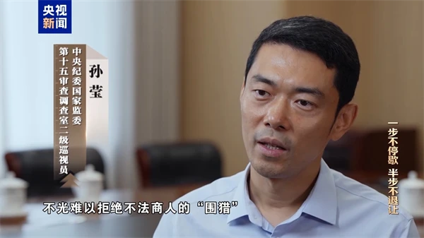 中央纪委国家监委第十五审查调查室二级巡视员 孙莹:他的个人总开关出了问题,一心想着为自己牟利,为自己的亲属牟利,为自己身边的“小圈子”成员牟利,不光难以拒绝不法商人的“围猎”,甚至主动甘于被“围猎”。