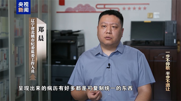 辽宁省北镇市纪委监委工作人员 郑晨:它的造假手段并不高明,呈现出来的病历有好多都是可复制统一的东西。比如说在2020年,我们发现心曙光医院出现900多例白内障手术。按照这种比例存在,和我们地区的现实情况是严重不符的,职能部门在日常监管当中是缺位的。