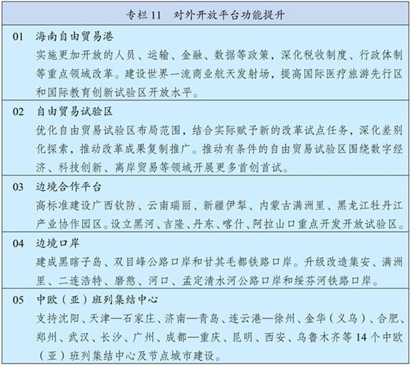 加强港澳与内地经贸、科技、人文等合作,完善便利港澳居民在内地发展和生活政策措施。有序推进与内地金融市场互联互通,深化与内地产学研创新协同。深化粤港澳合作,持续推动重点领域合作实现突破,促进港口、机场和轨道交通协同发展,建设广州至珠海(澳门)高铁,推进港深西部铁路前期工作。深化琴澳一体化发展,高质量建设前海、南沙、河套等重大合作平台。建设澳门国际机场横琴前置货站,推进澳琴国际教育(大学)城建设,支持澳门高校在横琴延伸办学。健全香港、澳门在国家对外开放中更好发挥作用机制,支持港澳深度参与高质量共建“一带一路”,发挥专业服务优势协助企业“走出去”。发挥港澳在中西文明交流互鉴中的重要窗口作用。